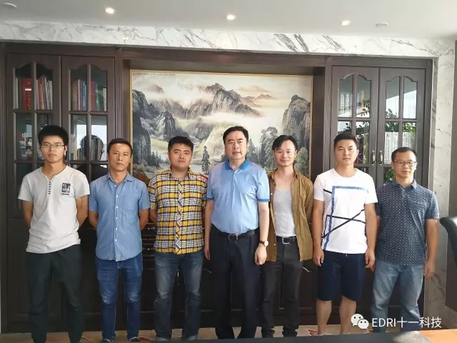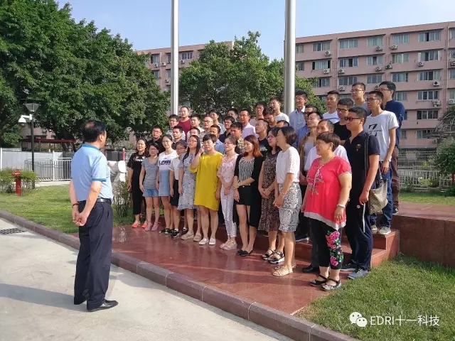 2017年8月12日上午9:00,晴日暖風,綠陰幽草。在十一科技南京分院院長戚海浪的帶領下,南京分院40余名干部員工到成都總部參觀學習。十一科技董事長趙振元、院史館主任陳巍親自在樓下迎接并合影留念。在升旗廣場前,趙振元同志致辭熱烈歡迎南京分同志們的到來,對南京分院的全體員工兢兢業業、努力工作和為十一科技的發展做出的貢獻表示由衷地欣慰與感謝。趙振元同志的講話令南京分院的同志們感受到了溫暖與關懷,倍感親切。